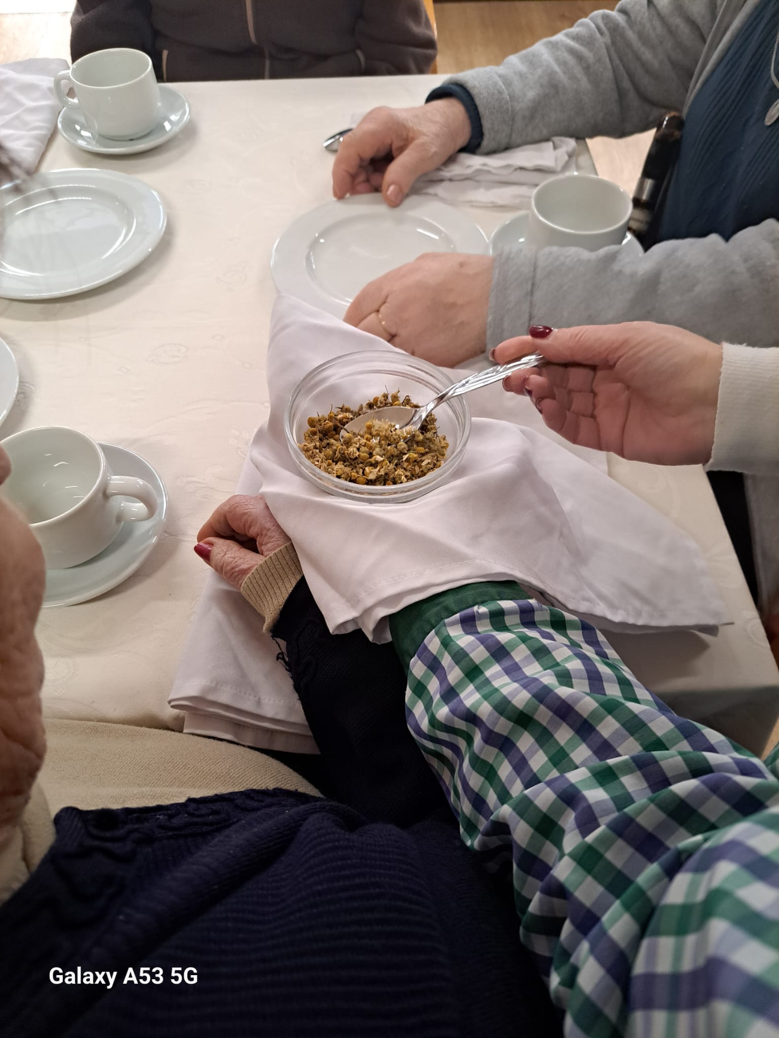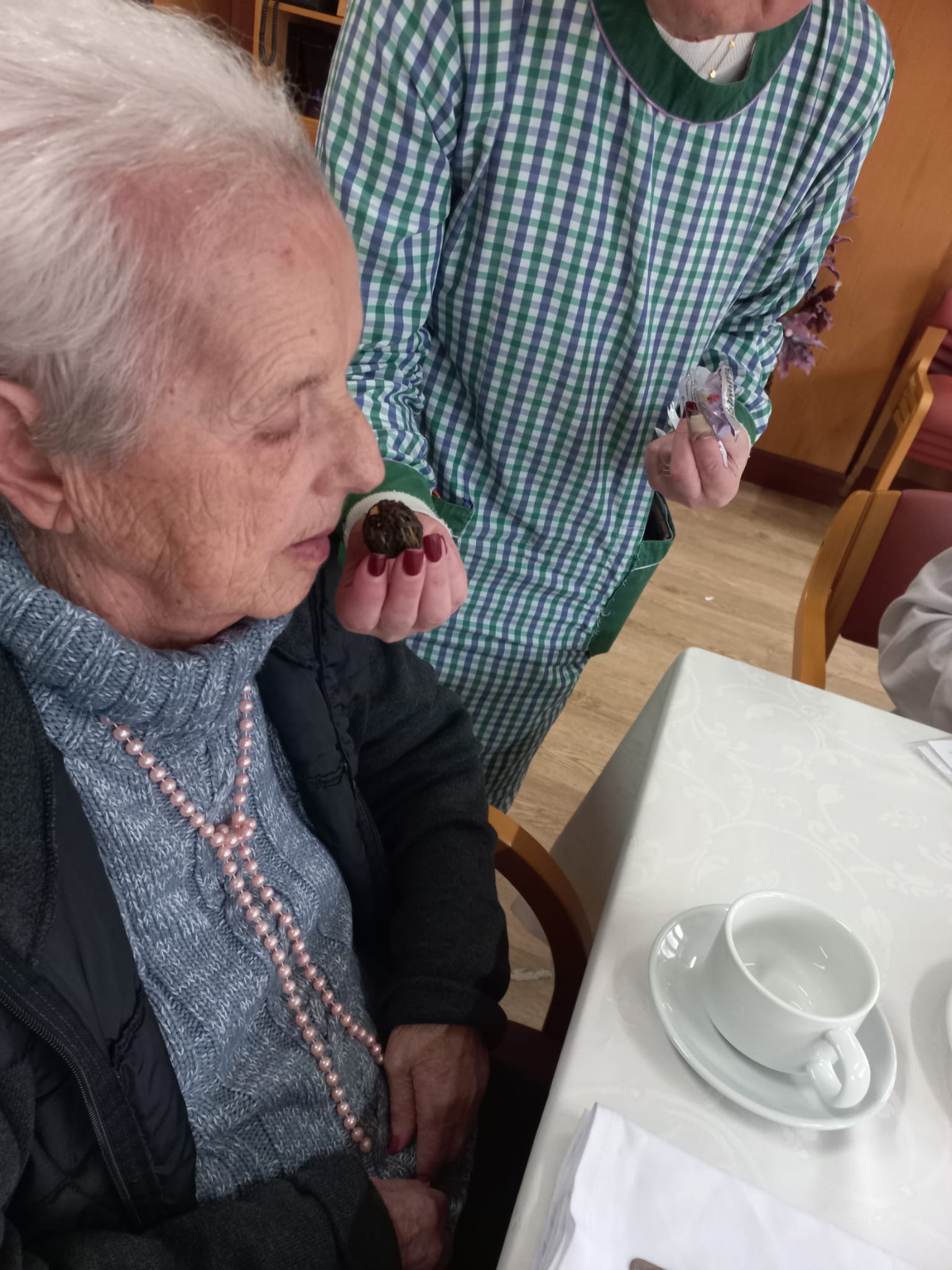 Ao longo de duas semanas, os utentes foram convidados a participar em encontros de “Chá” em pequenos grupos, tendo em conta algumas capacidades e afinidades entre eles, com o objetivo de os envolver em atividades de estimulação no âmbito do projeto “Snoezelen 24 horas”.